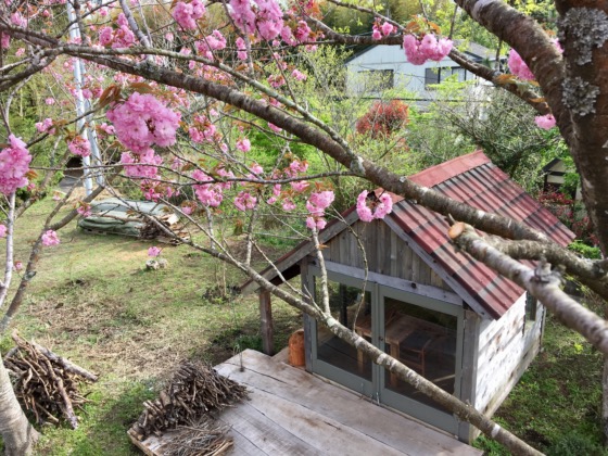 只今、八重桜の満開の小屋の解放を考えています。風呂無し、トイレ無し、もちろん電気もガスも水道もありません。なに不自由無しの今の生活から現実逃避されたい方にはもってこいのスペースです。