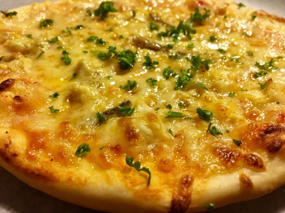 「福が来るように!」といただいた「フグのコンフィ」でピザづくり。ピッサァではなくピザですが…。