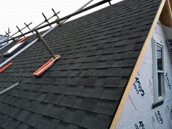 屋根工事が半分終了です。明日は施主さんとの屋根工事。急勾配の屋根なのでちょっと心配ですが…。