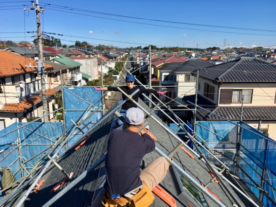 体験型の家づくり。いつの日か家づくりの体験を思い出してくれたら、、と思っています!母屋の屋根工事が終了です。最初で最後?の屋根工事の作業。お疲れ様でした。