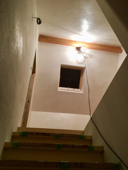 二階のホールに取り付けた天窓。夜は寝転がりながらプラネタリウムが楽しめます!