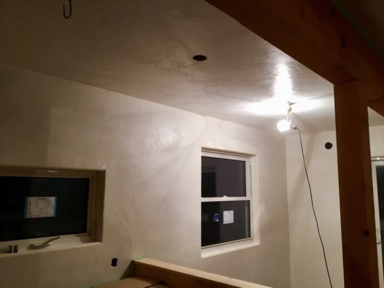 漆喰の塗りたいては、若干の生臭い匂いがします。しかし、この漆喰が乾くと何とも言えない空気感を感じることができます。自然素材に囲まれた空気感をたのしんでいただけたらなぁ〜と思っています。