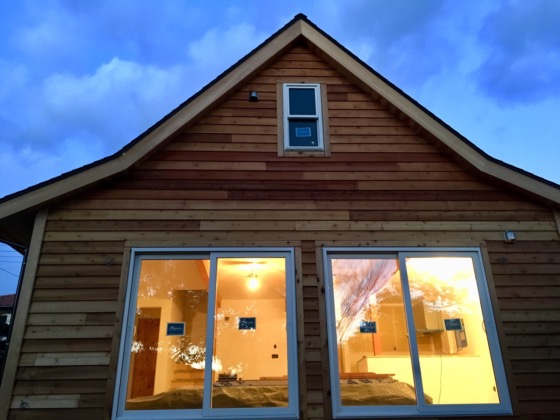 室内の灯りがつくと何とも言えないあたたかさを感じます。家の機能性などそこそこでいいと。「居心地一番な家づくりを!」と思っています。