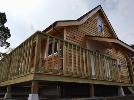 デッキに手すりが付けば家づくりも終了です。家の周りを囲む大きなデッキなのでもう少し時間がかかります。
