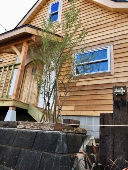 シンボルツリーはヒメシャラです!日当たりの悪い北側ですが、大丈夫のようです。樹形がとても良い!今後の成長がとても楽しみです。