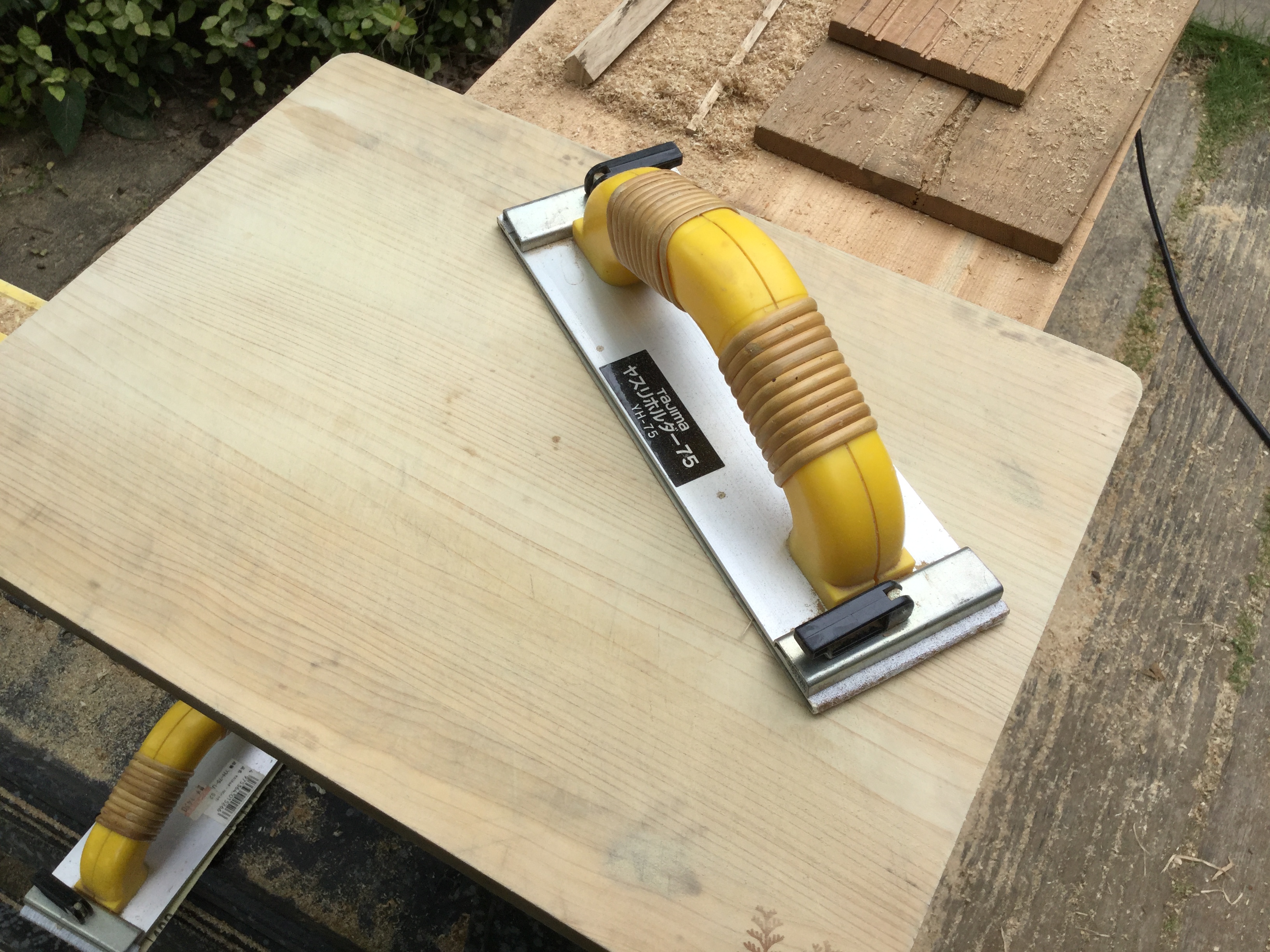 今年は、梅雨入りも早そうですね。急いでまな板のお手入れです。木のまな板は、包丁のあたりが柔らかくって手首に優しい。でも、気持ち良く使い続けるには、お手入れがやっぱり必要。粗めの紙やすりで丁寧に表と裏を研磨すると新品とまでは言わないけど、おろしたてのような綺麗な木肌が出てきます。