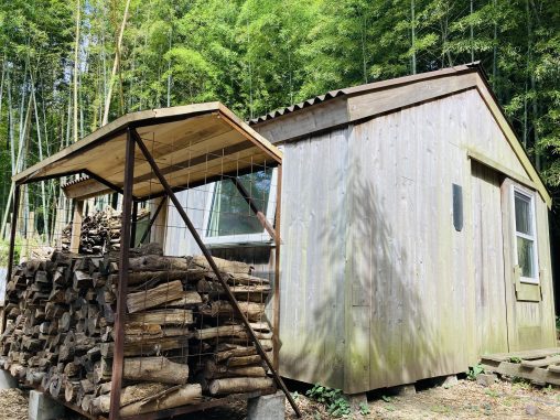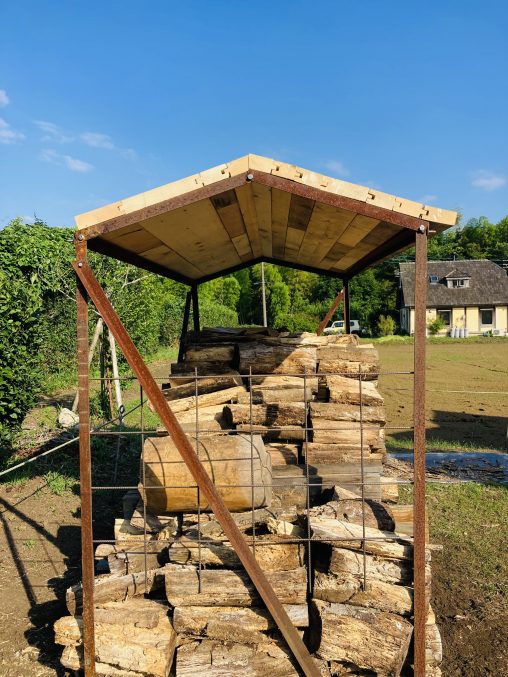 太陽ギラギラの中、薪棚の設置を行いました。それにしてもい…