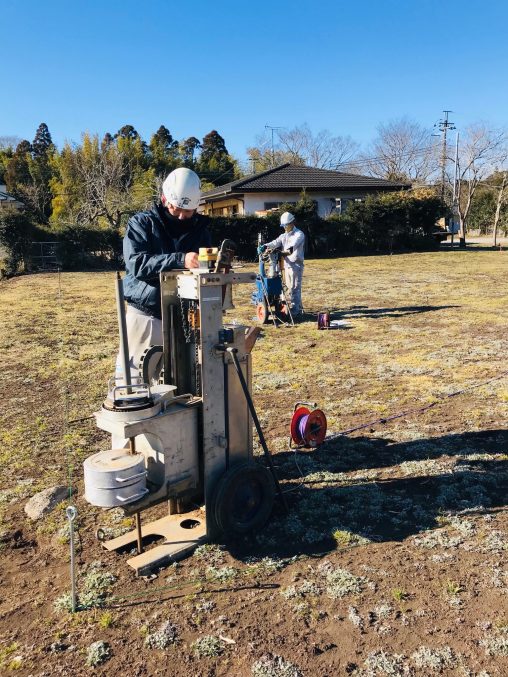 家づくりの始めの工事は地盤調査。地盤強度とバランスを調べ…