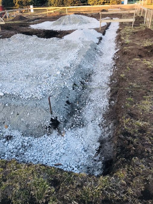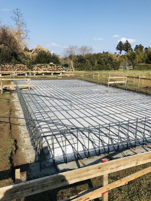 基礎工事は砕石敷きを終え、防湿シートを敷き終えた後はいよ…